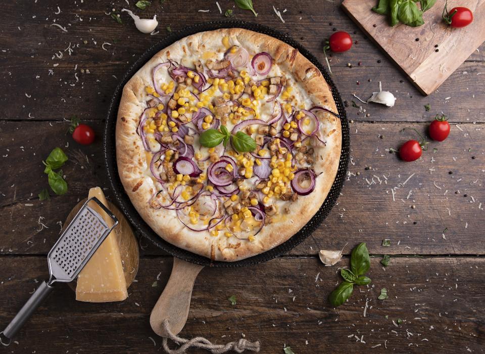 Töltött szél, tejfölös alap, csirkemell kocka, lilahagyma, kukorica, mozzarella sajt