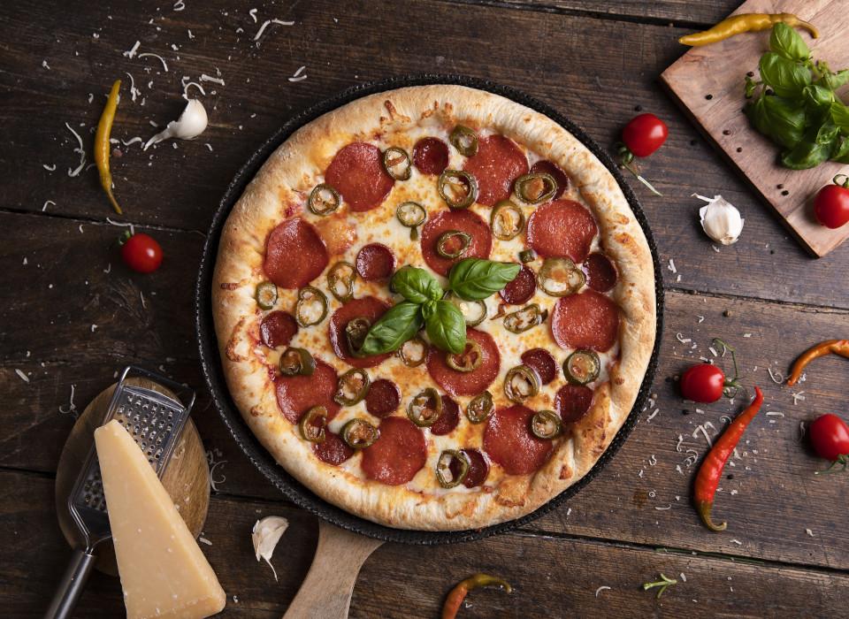 Töltött szél, csípős paradicsomos alap, kolbász, szalámi, jalapeno, mozzarella sajt