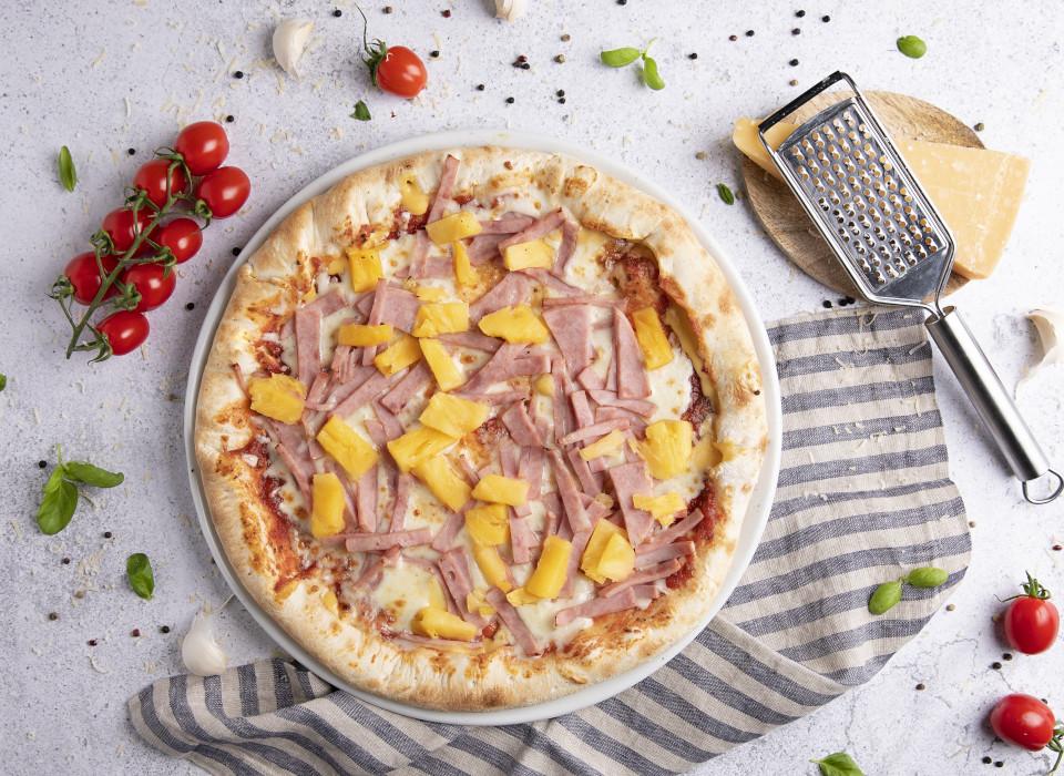 Töltött szél, paradicsomos alap, sonka, ananász, mozzarella sajt