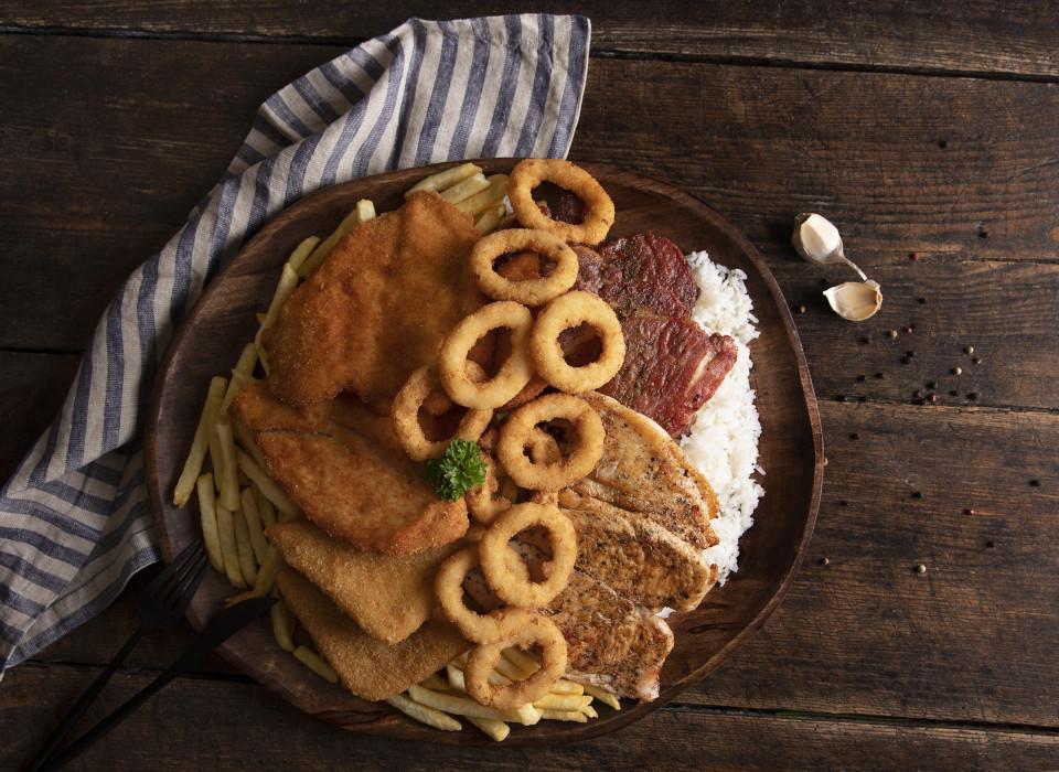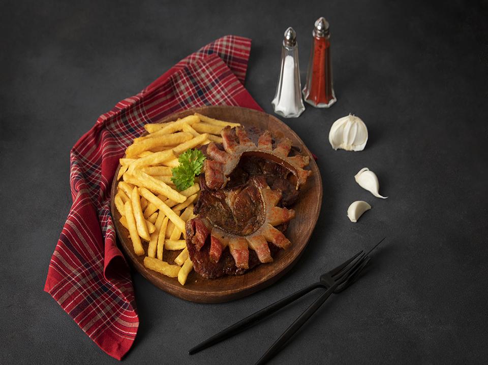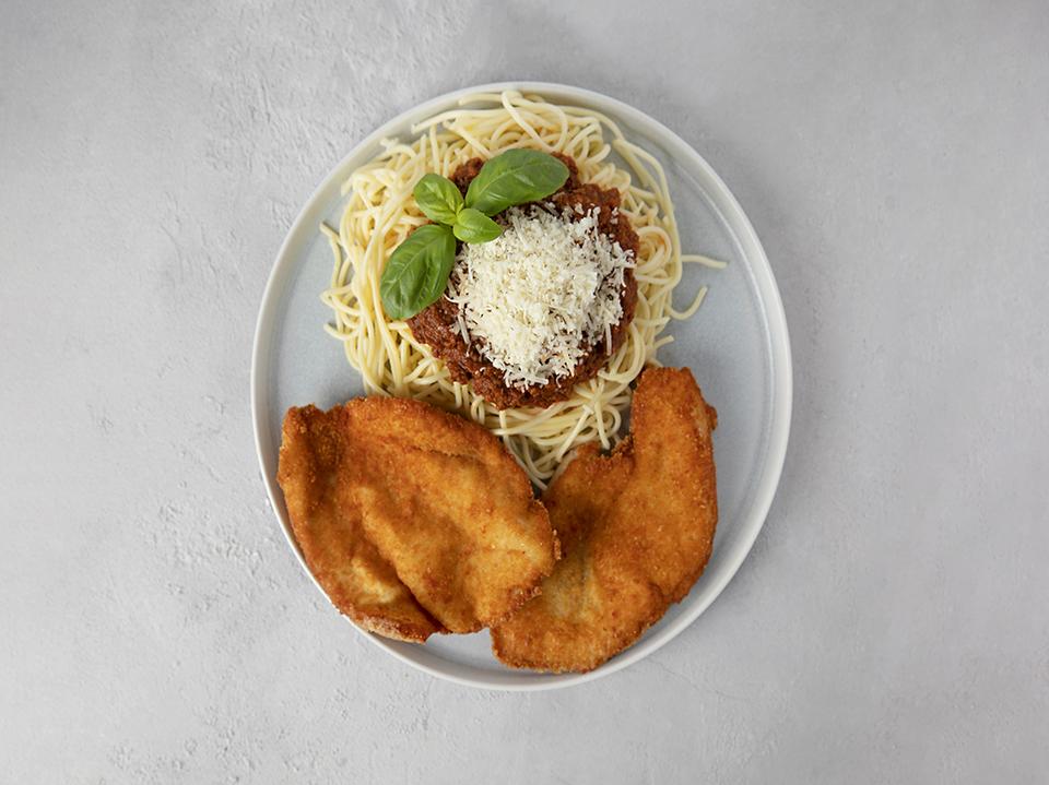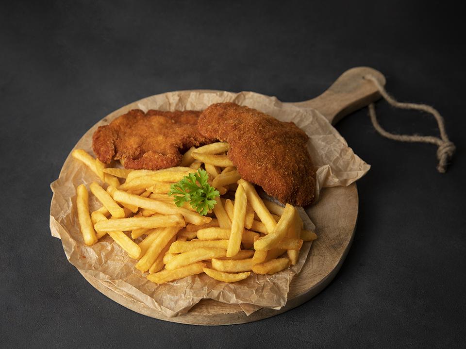 2 szelet rántott karaj, választható köret (hasábburgonya/rizs/friss zöldség tzatzikivel)