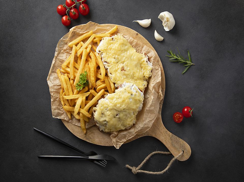 2 szelet rántott sajt, választható köret (hasábburgonya/rizs/friss zöldség tzatzikivel)