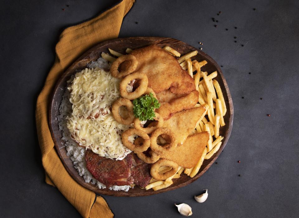 3 szelet rántott sajt, választható köret (hasábburgonya/rizs/friss zöldség tzatzikivel)