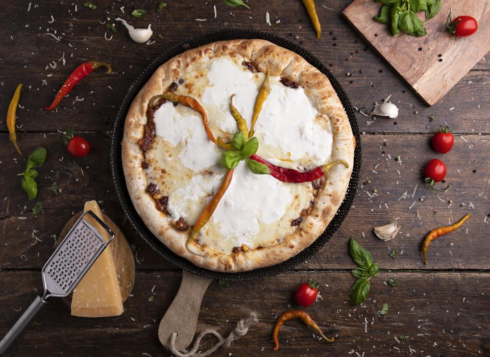 Töltött szél, cheddar sajtszósz alap, csirkemell kocka, jalapeno, bacon kocka, mozzarella sajt